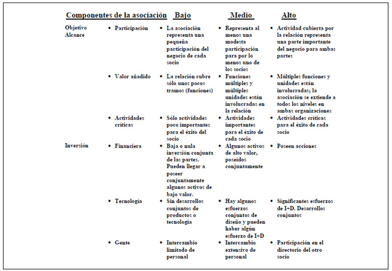 - Componentes según el tipo de relación en una asociación estratégica. Material de clase de IEEC